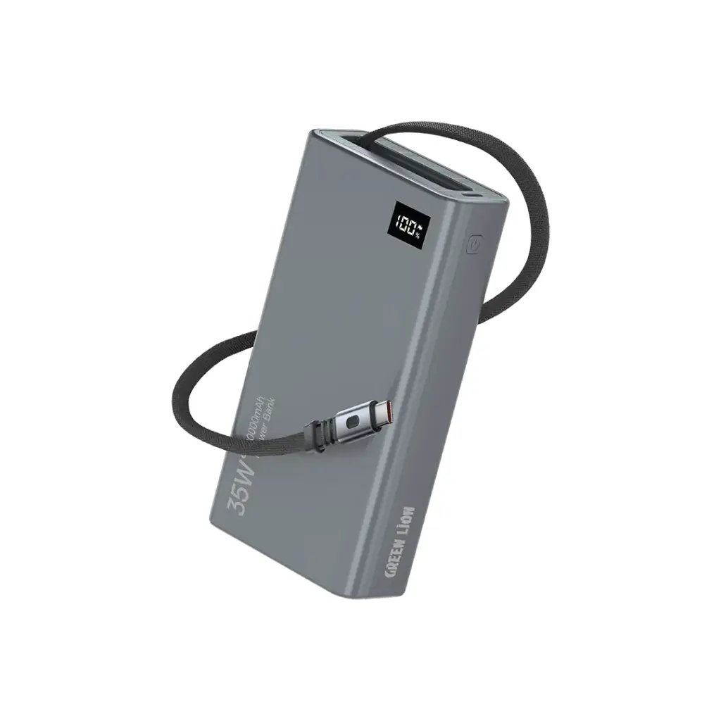 پاوربانک گرین لاین ظرفیت 20000 میلیآمپر با توان 35 وات با کابل جمعشونده