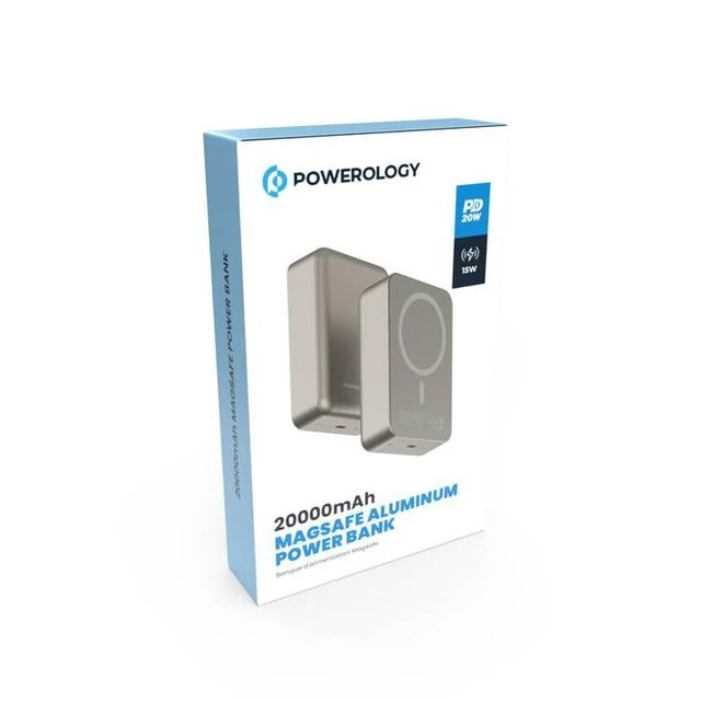 پاوربانک Powerology 20000mAh Magsafe Aluminum Power Bank PPBCHA33 با ابعاد ۱۰۴×۶۸×۲۸ میلی متر و وزن ۳۴۹ گرم، طراحی جمع و جور و سبکی دارد که حمل آن را آسان می سازد. بدنه این پاوربانک از آلیاژ آلومینیوم ساخته شده که علاوه بر زیبایی، مقاومت بالایی در برابر ضربه و سایش فراهم می کند. سطح مات و ضدلغزش آن نیز از لیز خوردن دستگاه جلوگیری می نماید. وجود نشانگرهای LED روی بدنه، میزان شارژ باقی مانده را نمایش می دهد و کلید پاور امکان مدیریت مصرف انرژی را فراهم می کند.
