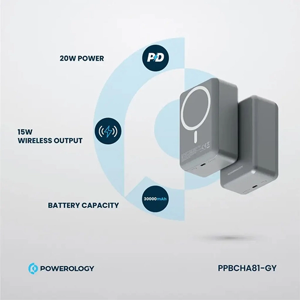 پاوربانک مگسیف 30000mAh آلومینیومی پاورولوژی (PPBCHA81) یک پاوربانک حرفهای و پرظرفیت است که برای کاربرانی طراحی شده که به شارژ مطمئن و چندمنظوره نیاز دارند.